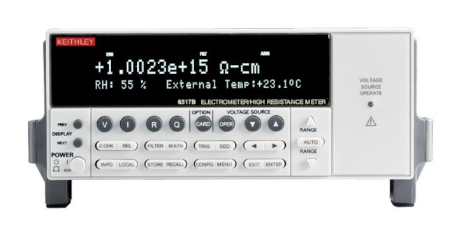 Keithley 6517B je celosvetovým štandardom na meranie prúdov do 10 aA a odporov do 1018 Ω, zabudovaný napájací zdroj je 1000 V a meranie elektrického náboja od 1 fC do 2 µC.