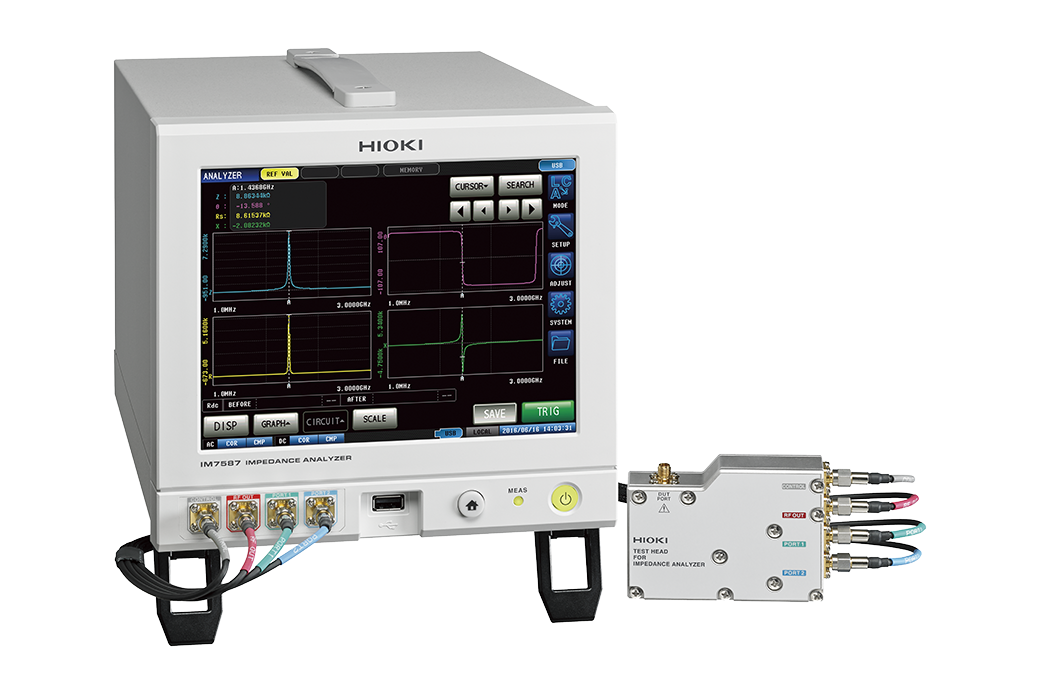 Meranie impedancie až do 3 GHz umožňuje analýzu RF súčiastok, napríklad v aplikáciách bezdrôtovej komunikácie. S frekvenčným rozsahom od 1 MHz do 3 GHz podporuje IM7587 charakterizáciu súčiastok, ako sú čipové tlmivky, feritové korálky, filtre, rezonátory a prispôsobovacie siete pri návrhu RF obvodov.