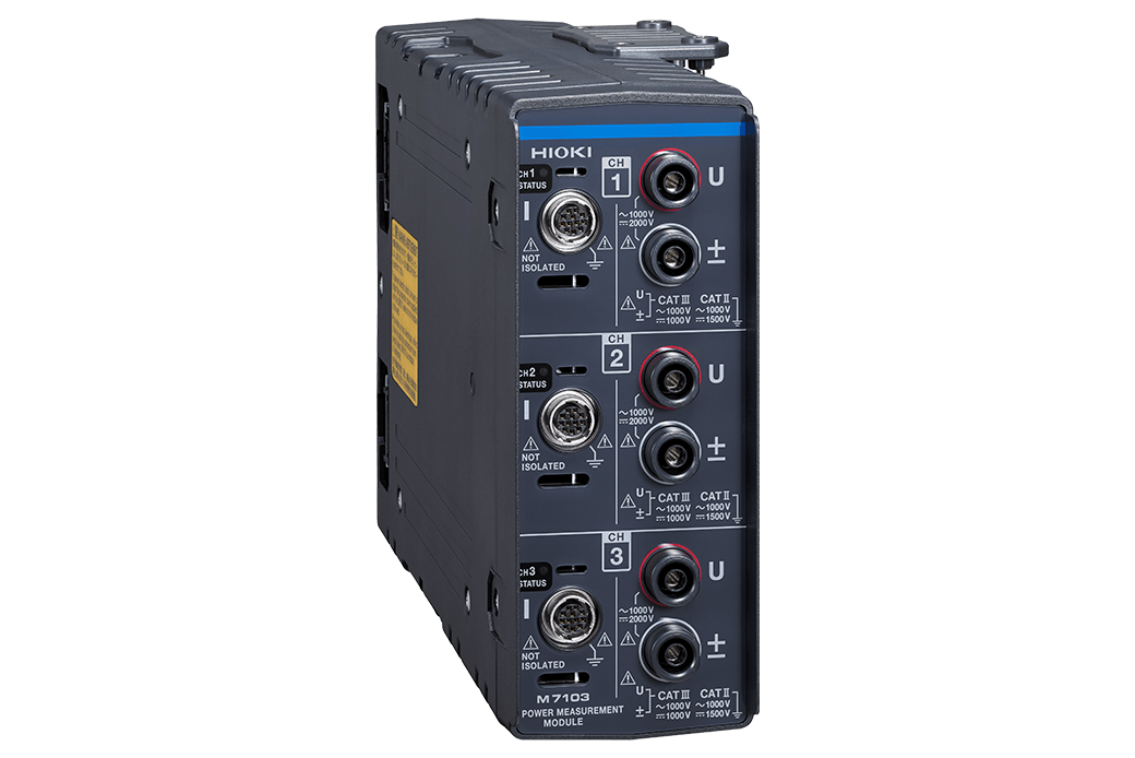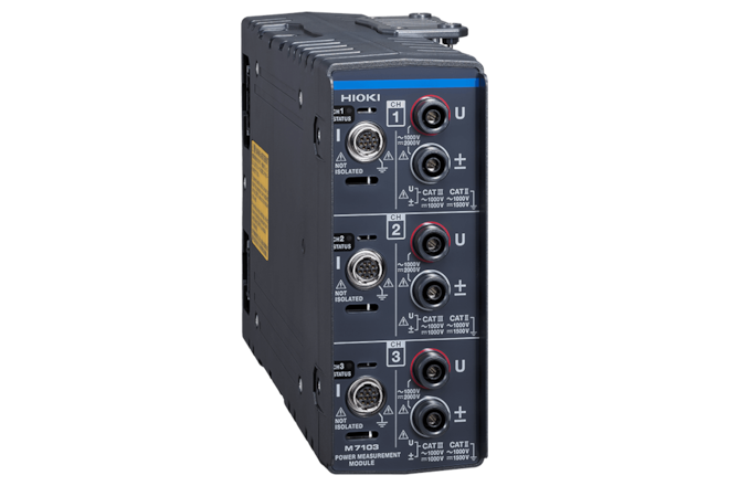 Kanály vstupného napätia sú navrhnuté pre priamy vstup napätia až do 1500 VDC alebo 1000 VAC, CATII, čo robí M7103 ideálnym pre bezpečné a spoľahlivé testovanie výrobnej linky. Všetky vysoko presné prúdové senzory HIOKI s konektorom ME15W je možné kombinovať s modulom na meranie výkonu M7103, čo používateľom poskytuje flexibilitu pri výbere ideálneho prúdového senzora pre ich konkrétnu aplikáciu. S intervalom aktualizácie len 5 ms modul umožňuje podrobné zaznamenávanie výkonu, napätia alebo prúdu s výnimočnou presnosťou.