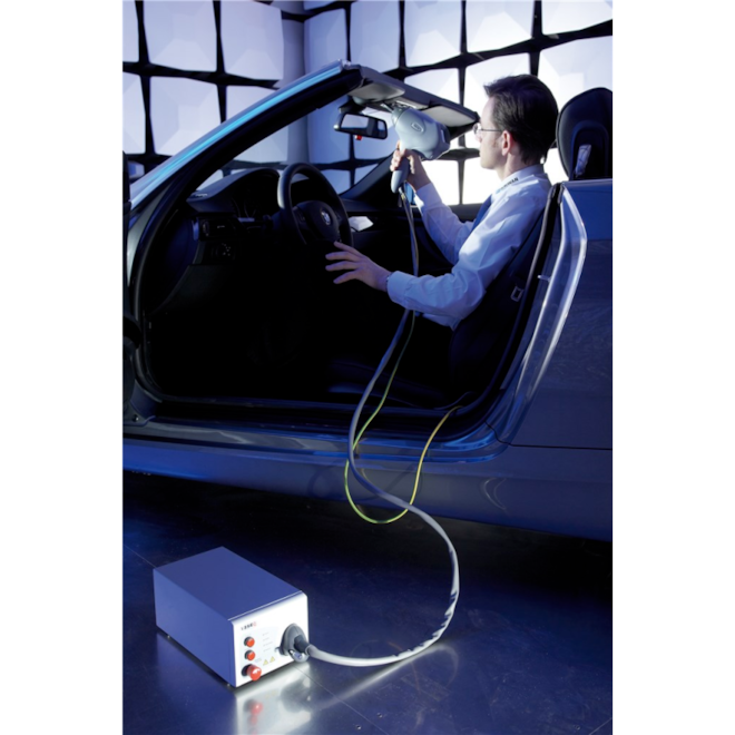 Simulátor NSG 438 ESD je navrhnutý tak, aby sa pohodlne držal v ruke obsluhy, pričom prevádzkové podmienky sa nepretržite zobrazujú na prehľadnom farebnom dotykovom displeji. NSG 438 komplexne spĺňa prakticky všetky požiadavky medzinárodných noriem. Na základe viac ako 60 voliteľných vybíjacích sietí dokáže NSG 438 splniť všetky aktuálne normy výrobcov automobilov. Používanie simulátora je jednoduché, pohodlné a bezpečné. K dispozícii je celý rad nastavení parametrov vrátane voľby polarity, voľne nastaviteľného opakovania impulzov, funkcií počítadla a detekcie výbojov až do maximálneho vybíjacieho napätia. Farebná dotyková obrazovka a klávesnica na zadávanie parametrov zobrazujú presné funkčné a testovacie údaje s používateľsky voliteľným jazykom na pohodlnú a bezpečnú prevádzku po celom svete. Simulátor obsahuje variabilnú voľbu prahu na presnú detekciu výbojov. Túto funkciu detekcie možno vypnúť pri testovaní EUT s nevodivými povrchmi, ako sú napríklad plastové kryty. Predprogramované nastavenia pre normy IEC 61000-4-2 a ISO 10605 zabezpečujú automatické správne nastavenie simulátora a inštaláciu príslušnej siete výbojov. Vždy sa zobrazuje aktuálna hodnota RC. Tvarované VN výbojové siete v pevných krytoch eliminujú ionizačné účinky a účinky unikajúceho prúdu. Presne vyladené kombinácie RC prvkov zabezpečujú, že parametre priebehu sú v toleranciách. Súčasťou je jedinečný protokol činnosti, takže si môžete ľahko prezerať typy a počty simulácií ESD a kontrolovať, čo sa testovalo a v akom časovom rámci.