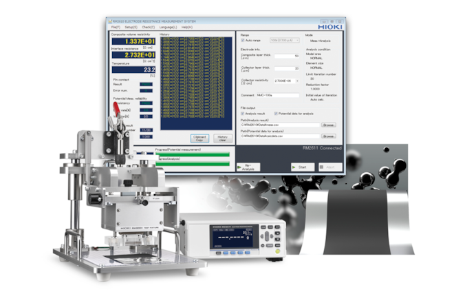 Systém na meranie odporu elektród HIOKI RM2610 je výkonný nástroj určený pre vývojárov lítium-iónových batérií (LiB) aj pre tímy zabezpečujúce kontrolu kvality pri výrobe elektródových fólií. Vývojárom poskytuje hlbšie porozumenie vlastnostiam materiálov vo fáze výskumu a vývoja a zároveň urýchľuje proces návrhu batérií tým, že umožňuje včasné posúdenie, či má daný návrh článku dostatočný potenciál na ďalší rozvoj. Vo výrobe zabezpečuje RM2610 konzistentnú kvalitu sériovej produkcie tým, že spoľahlivo identifikuje odchýlky vo vlastnostiach elektródových fólií. Včasná detekcia týchto odchýlok pomáha minimalizovať chybné články, znižovať plytvanie materiálom a udržiavať vysokú výťažnosť výroby.