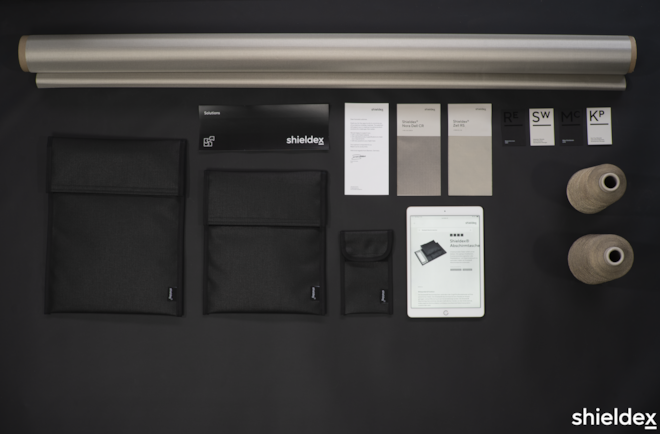 Tieniace puzdrá Shieldex® sú profesionálnou ochranou proti zneužitiu a zálohovaniu údajov, okrem iného v oblasti mobilnej forenznej techniky, s tienením až do 100 dB vo frekvenčnom rozsahu 0,7 až 6 GHz. Sú k dispozícii v rôznych veľkostiach a prevedeniach pre notebooky, tablety, mobilné telefóny a bezkľúčové kľúče Go. Tieniace puzdrá Shieldex® sú vyrobené z husto tkaného polyamidu, zatiaľ čo vnútro je vyrobené z dvoch rôznych metalizovaných tkanín Shieldex. Tieto tkaniny sa používajú na veľkoplošné tienenie vysokofrekvenčného a elektromagnetického žiarenia (HF) a nízkofrekvenčných striedavých elektrických polí (LF).